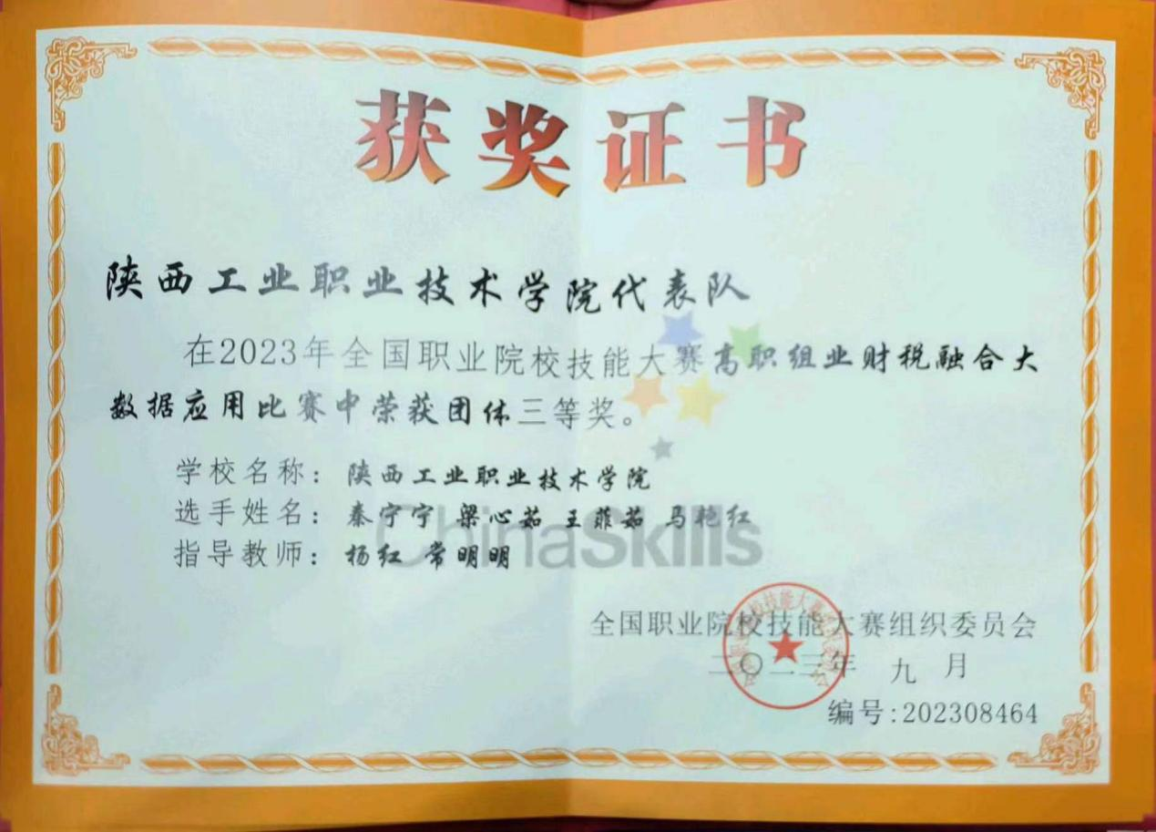 2023年7月22日至24日,2023年全国职业院校技能大赛(高职组)“业财税融合大数据应用”赛项在长沙商贸旅游职业技术学院成功举办。本赛项为团体赛,全国31个省共95支队伍380人参赛,每队4人,是全国职业院校技能大赛大规模赛项之一。经过两天的激烈竞争,由我校财经与旅游学院杨红、常明明老师指导的大数据与会计专业秦宁宁、梁心茹、王菲茹、马艳红同学组成的代表队斩获团体三等奖,实现了该专业在学生技能大赛国赛零的突破。