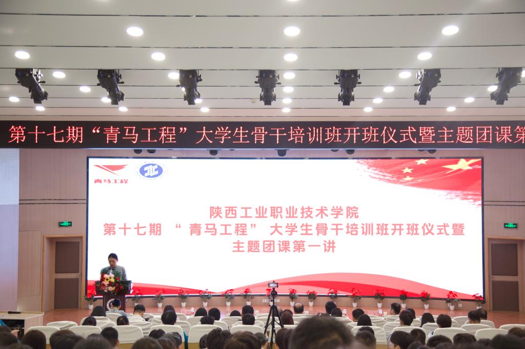 11月9日下午,我校第十七期“青马工程”大学生骨干培训班开班仪式在渭城校区学术会堂举行,经开校区设分会场,同时面向全校学生开启线上直播。学校党委委员、副校长梅创社,党委组织部、学工部、马克思主义学院负责人,各二级学院党总支书记、团总支书记、教师团干部,全体青马班学员参加本次活动。开班仪式由团委书记薛媚主持。