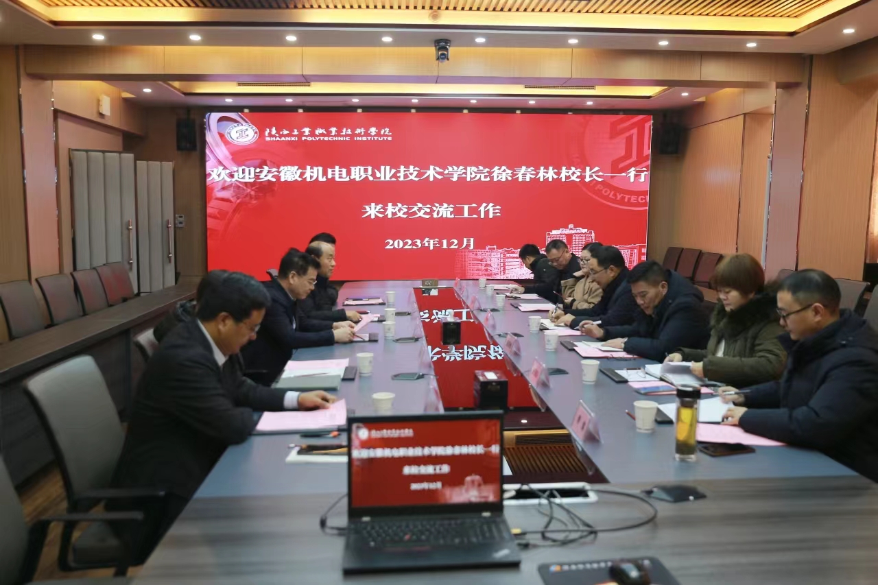 12月25日上午,安徽机电职业技术学院徐春林校长一行7人来我校调研交流。学校校长刘永亮、副校长梅创社及相关部门陪同座谈,座谈会由副校长梅创社主持。