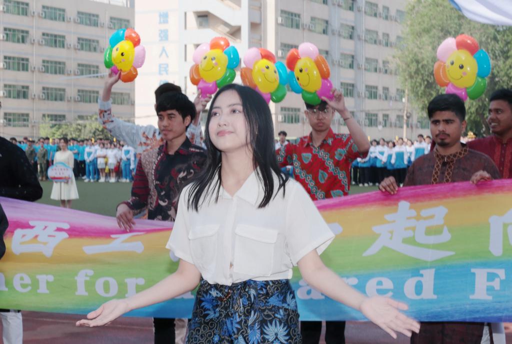 沐着骄阳,红旗迎风招展,国旗方队、彩旗方阵、花束方阵、裁判员方阵、运动员方阵步履铿锵。来自不同院系的19个方阵各出新意、各展风采,用响亮的口号与精心设计的表演诉说着对这场体育盛会的期待与热爱。电气工程学院学子用多彩的花束变幻出“我爱电气”“SXPI”的队形,生动诠释了“把最美的鲜花送给最可爱的人”;航空工程学院师生将舞蹈与武术相结合,通过美感与力量,展现出体育健儿的潇洒与激昂;机械工程学院师生整齐划一,他们高喊“知机识变,利械报国”的口号,展现了工院机械人在新时代潮头奋发向上的精神面貌;财经与旅游学院用活力十足的舞蹈串烧,为开幕式带来一道靓丽的彩虹……