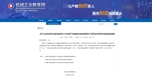 3月27日,机械工业教育发展中心公布了2023年度产科教融合发展成果和产学研合作项目评选结果名单,全国职业院校和相关企业提交的产教融合成果、案例和项目共计219篇,经专家评审,机械工程学院报送的《深化产教融合,共建产业学院,校企协同打造高水平制造人才培养新范式》、《接本地化人才培养需求,探索制造类专业海外办学新模式》和《机械制造及自动化专业校企双元育人项目》分别被评为2023年度十佳产科教融合发展成果、2023年度优秀产科教融合发展成果和2023年度优秀产学研合作项目。