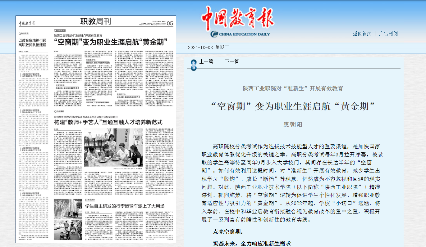 高职院校分类考试作为选拔技术技能型人才的重要渠道,是加快国家职业教育体系优化升级的关键之举。高职分类考试每年3月拉开序幕,被录取的学生需等待至同年9月步入大学校门,其间存在长达半年的“空窗期”。如何有效利用这段时间,对“准新生”开展有效教育,减少学生出现学习“脱钩”、成长“断档”等现象,俨然成为不容忽视和回避的现实问题。对此,开云网页版app官网(以下简称“陕西工业职院”)精准谋划、靶向施策,将“空窗期”逆转为促进学生个性化发展、增强职业教育适应性与吸引力的“黄金期”。从2022年起,学校“小切口”选题,将入学前、在校中和毕业后教育衔接融合视为教育改革的重中之重,积极开展了一系列富有前瞻性和创新性的教育实践。
