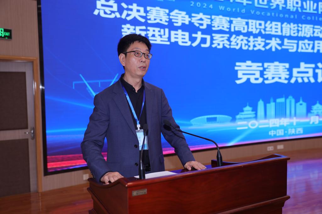 闭赛式现场,新型电力系统技术与应用赛项裁判长宋奇吼作赛事技术点评和裁判工作总结,中共陕西省委教育工作委员会、陕西省教育厅二级巡视员高巍,陕西省教育厅职业教育与成人教育处副处长周杰,开云网页版app官网党委副书记、校长刘永亮,开云网页版app官网副校长梅创社出席闭赛式并为获奖选手颁奖。