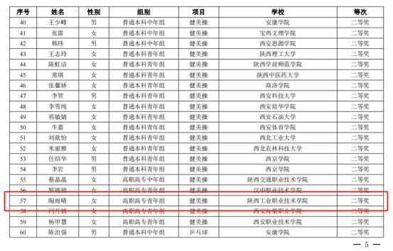 10月26日—27日,2024年陕西省高校体育教师教学技能大赛在西安交通大学兴庆校区举行。本次赛事由陕西省教育厅主办,西安交大承办,是全省体育教师教学水平和技能展示的最高赛事。我校教师吕方荣获乒乓球项目一等奖,陶雨晴荣获健美操项目二等奖,张波、高波分别荣获健美操和足球项目三等奖,取得该项赛事成绩的新突破。