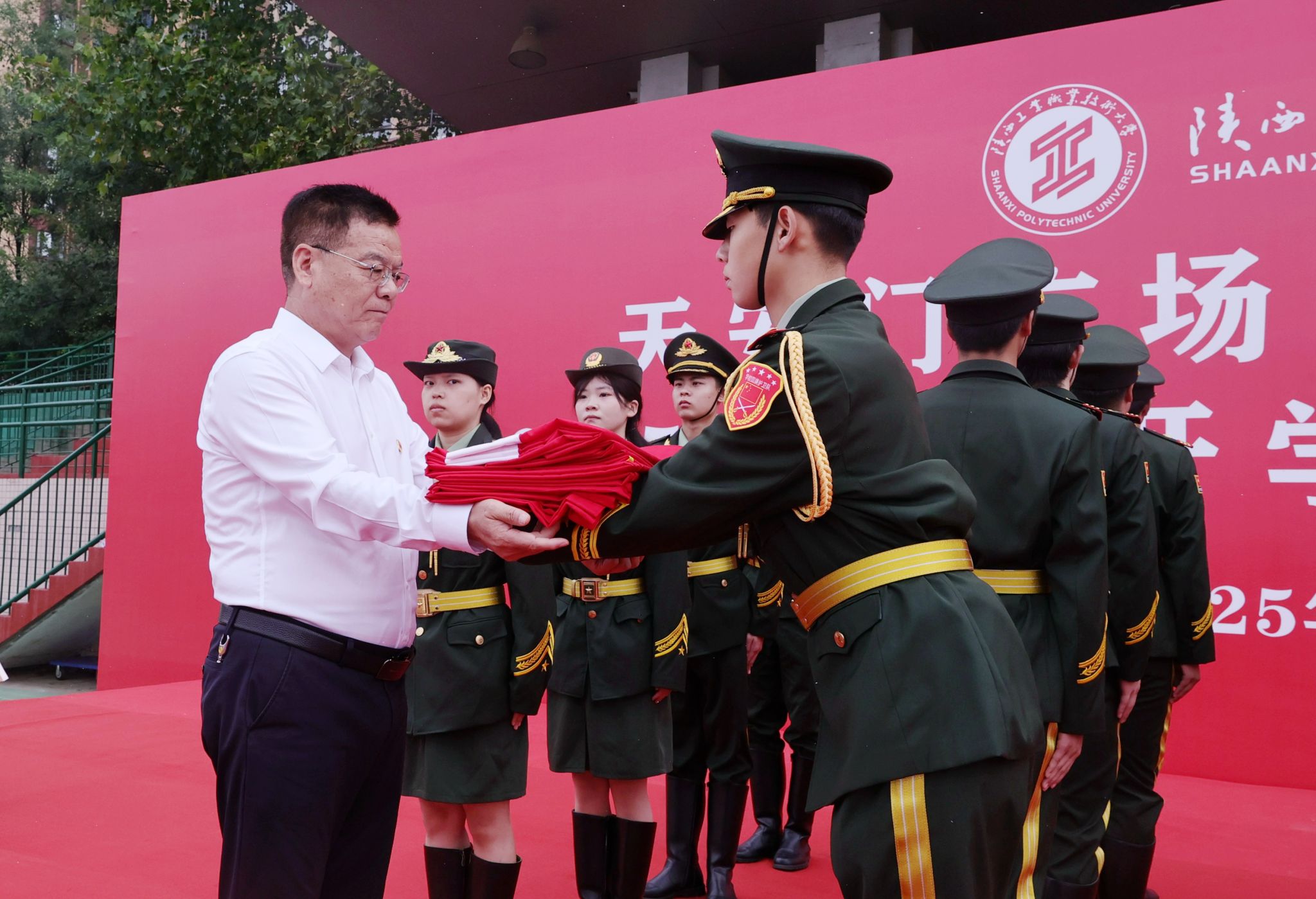 9月13日,我校在渭城校区操场举行天安门广场国旗迎接仪式。党委书记惠朝阳、校长刘永亮,校领导班子全体成员、处级干部、教师代表、2025级新生共同见证这庄严而神圣的时刻,仪式由党委副书记贺天柱主持。