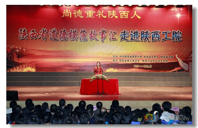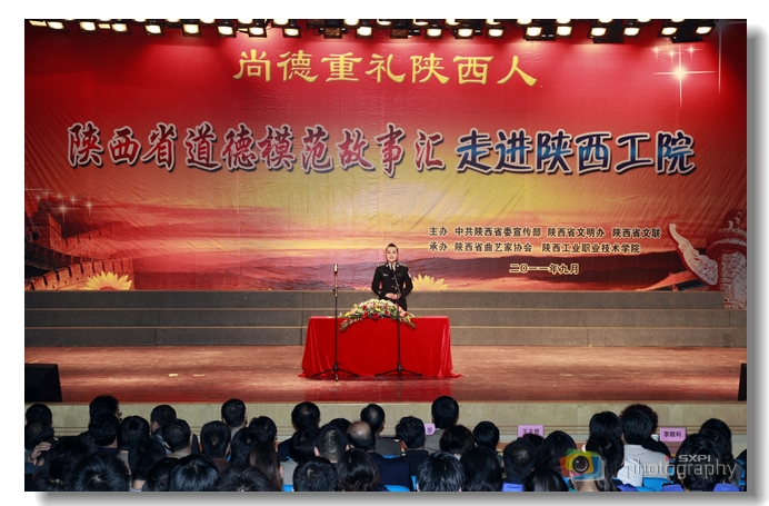 9月27日晚,“尚德重礼陕西人——陕西省道德模范故事汇”巡演活动走进我院,知名艺术家们用快板、相声、故事等曲艺形式为师生深情讲述了以陕西省“道德模范”真实事迹改编的一段段感人事迹,这也是我院创新理论学习形式,塑造健康校园文化的一次有益尝试。
