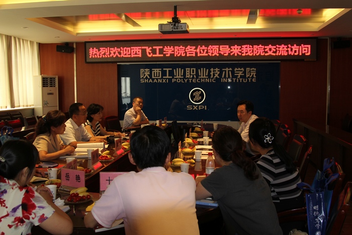 7月15日上午,西飞工学院党委书记赵双双及院长由正军、院办主任王新昌、教务主任高军及相关教研室主任一行12人来我院交流工作。在王晓江副院长、王津处长、朱忠军主任陪同下,西飞工学院一行参观了我院示范建设资料室、物流管理学院、数控工程学院、电气工程学院、信息工程学院实训实验室等。随后,在九楼会议室观看了我院建校60周年专题片之后,副院长王晓江代表学院对客人的到来表示热烈欢迎。王津处长就我院教学计划的设置与安排、人才培养方案的制定、专业建设、校企合作、实验实训条件建设、人才培养等方面详细介绍了我院在教育教学改革方面取得的成效。会上,我院副院长王晓江、教务处处长王津、党政办主任朱忠军等与西飞工学院的老师们分别进行了深入的交流。西飞工学院赵双双书记、由正军院长对我院的热情接待表示忠心感谢,对我院在教育教学改革中取得的成效表示赞赏,并希望今后两校能加强联系、相互学习、共同促进。