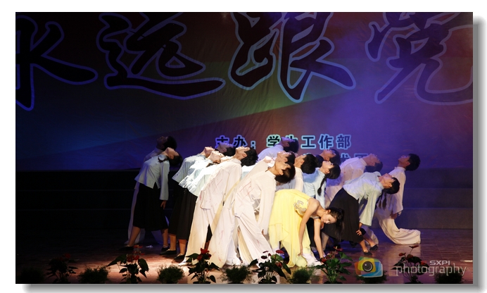 演员们曼妙的舞姿,轻盈的舞步赢得场下热烈掌声。演出现场亮点频出,高潮迭起。伴随着优美的旋律,付胜利、党焱老师老师一曲《把一切献给党》饱含深情的演唱,更是把演出推向了高潮。接下来,配乐情景朗诵《永远跟你走》,表达了学院师生对党的无限热爱和深切祝福,让同学们重温了党的光荣历史,回顾了改革开放的伟大征程。