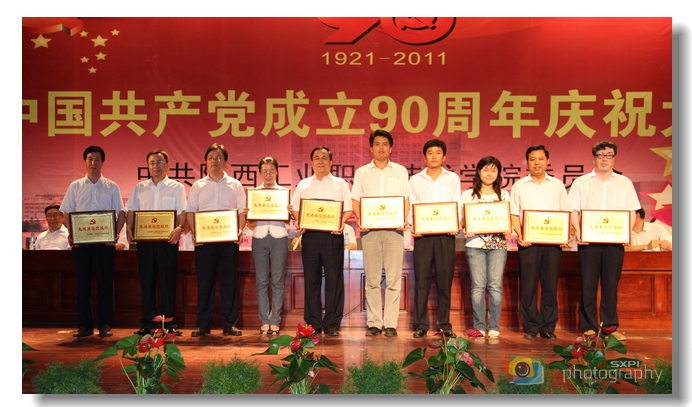 雄壮的国际歌奏唱后,党委副书记王天哲同志宣读了省委、省政府、省委教育工委及我院党委的表彰决定,对荣获全省、全省高校和我院的先进基层党组织、优秀共产党员、优秀党务工作者及庆祝建党90周年系列活动中的先进集体和个人进行表彰奖励。随后,受表彰的单位和个人在热烈的掌声中上台领奖。