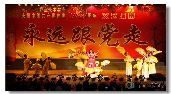 会后,学院领导和师生党员代表共同观看了“永远跟党走”庆祝中国共产党成立90周年文艺演出。