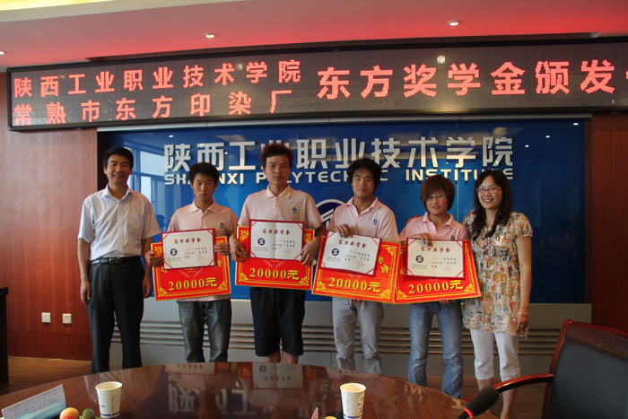 据悉,“东方奖学金”计划从2011年始,连续3年,每年设立10万元奖学金,用于奖励我院染整技术、纺织品检验与贸易、新型纺织机电技术、应用化工技术等专业,愿为东方染整厂发展做贡献的优秀学生。