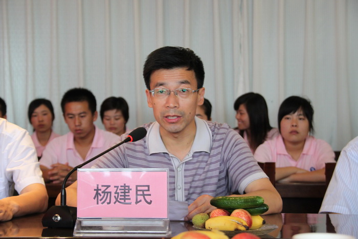 纺化学院院长杨建民宣读“东方染整奖学金”管理办法