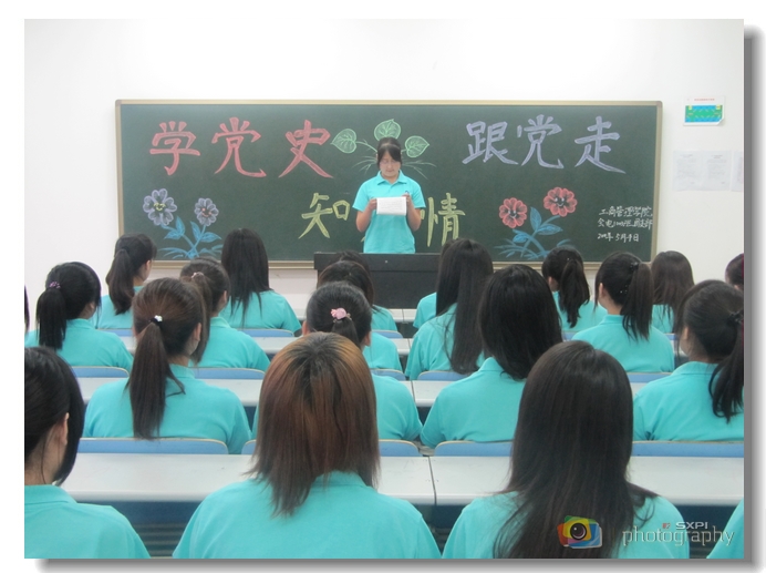 近日,为迎接中国共产党建党90周年,我院团委在广大团员青年中开展了“学党史、知党情、跟党走”系列主题团日活动,包括团章学习会、党团员座谈交流会、入团宣誓仪式、“永远跟党走”演讲活动、纪念五四运动92周年图片展、“弘扬五四爱国志、引领新风我先行”签名活动等,使同学们深入学习了90年来党的光辉历程和宝贵经验,重温党的历史,继承党的优良传统,坚定永远跟党走的信念。