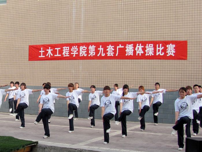 4月26日下午,为推动我院全民健身运动的深入开展,营造健康向上的校园文化氛围,土木工程学院第九套广播体操比赛在学院羽毛球馆北侧广场隆重举行。