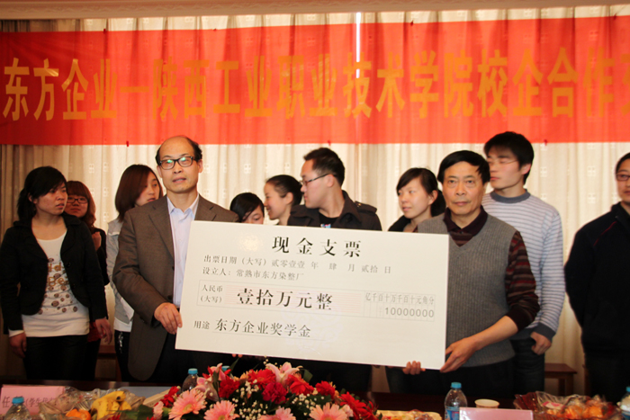陈變元董事长首先介绍了企业基本情况和我院学生在东方染整厂实习和就业情况,并对我院学生给予高度评价,他指出,企业从2011年开始每年设立10万元“东方奖学金”,连续设立3年,用于奖励我院染整技术、纺织品检验与贸易、新型纺织机电技术、应用化工技术等专业的优秀学生。