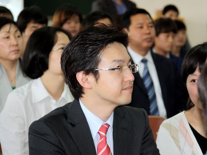 岩冈俊行先生代表欧姆龙公司日本总部领导发言,他说,看到欧姆龙班同学们学习认真刻苦他倍感欣慰。他代表公司对即将踏上工作岗位的欧姆龙一期班学员表示热烈欢迎!他希望更多的同学加入到欧姆龙订单班中,为公司今后的发展注入更多鲜活的血液!