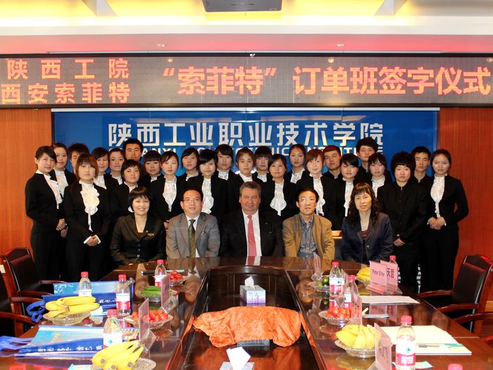 PeterErler总经理代表索菲特人民大厦感谢我院领导对“索菲特订单班”的大力支持,并希望与我院在人才培养等方面建立长期合作关系。Joseph Soh Kim Kiaw经理认为,经过“索菲特”职业化的培训,可以帮助订单班学生掌握酒店职业经理人的技巧。他表示,西安索菲特人民大厦内的众多外方经理,很擅长也很乐意培养下一代酒店行业接班人、精英。同时他希望订单班的同学们能带着信心,在“索菲特”的大家庭里每天学习,每天成长,并鼓励同学们充满激情地开始自己的索菲特生涯。