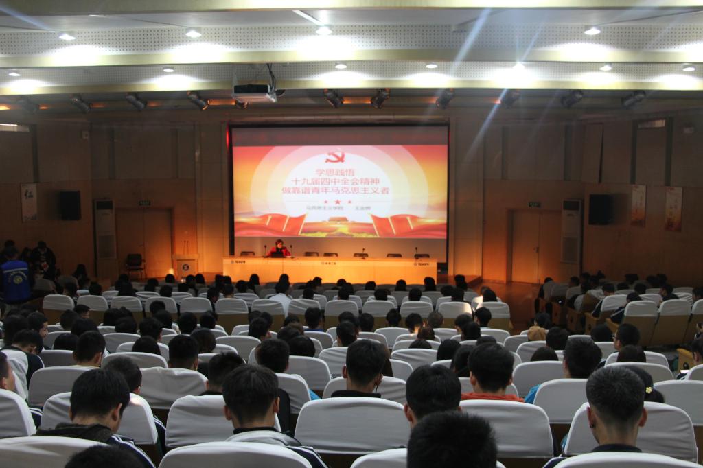 11月15日下午,我院团委在学术会堂举行第十三期“青年马克思主义者培养工程”专题理论讲座,邀请马克思主义学院院长王金辉教授作题为《学思践悟十九届四中全会精神,做靠谱青年马克思主义者》专题讲座,400名青马学员参加了专题学习。