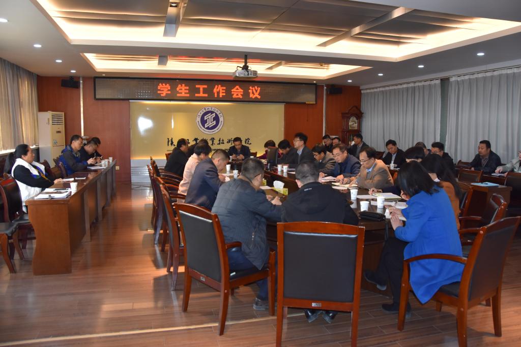 11月19日下午,学生工作会议在崇文楼九楼第一会议室召开。学生处、团委、各二级学院副科级以上干部30余人参加了会议,会议由学生处处长郝军主持。