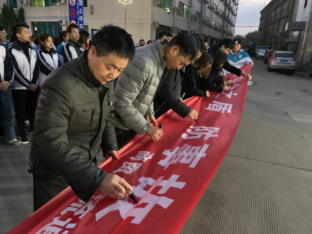 升旗仪式结束后,学工办主任成志平在国旗下进行讲话,他要求同学们牢固树立安全无小事、生命重于泰山的观念,呼吁同学们警惕冬季呼吸道传染病,注意饮食卫生安全,增强用火用电安全意识和交通安全意识,家校紧密联系,将安全意识转化为实际行动,共同创造舒适安全的校园环境。随后,物流管理1902班李晨曦作为学生代表在国旗下进行演讲,她号召同学们珍爱生命,为和谐平安校园的构建出一份力。最后,全体师生在“举安全之盾 防事故之患”宣传横幅上签字承诺,共同表明校园安全从我做起的决心,积极构筑安全、温馨的和谐校园。