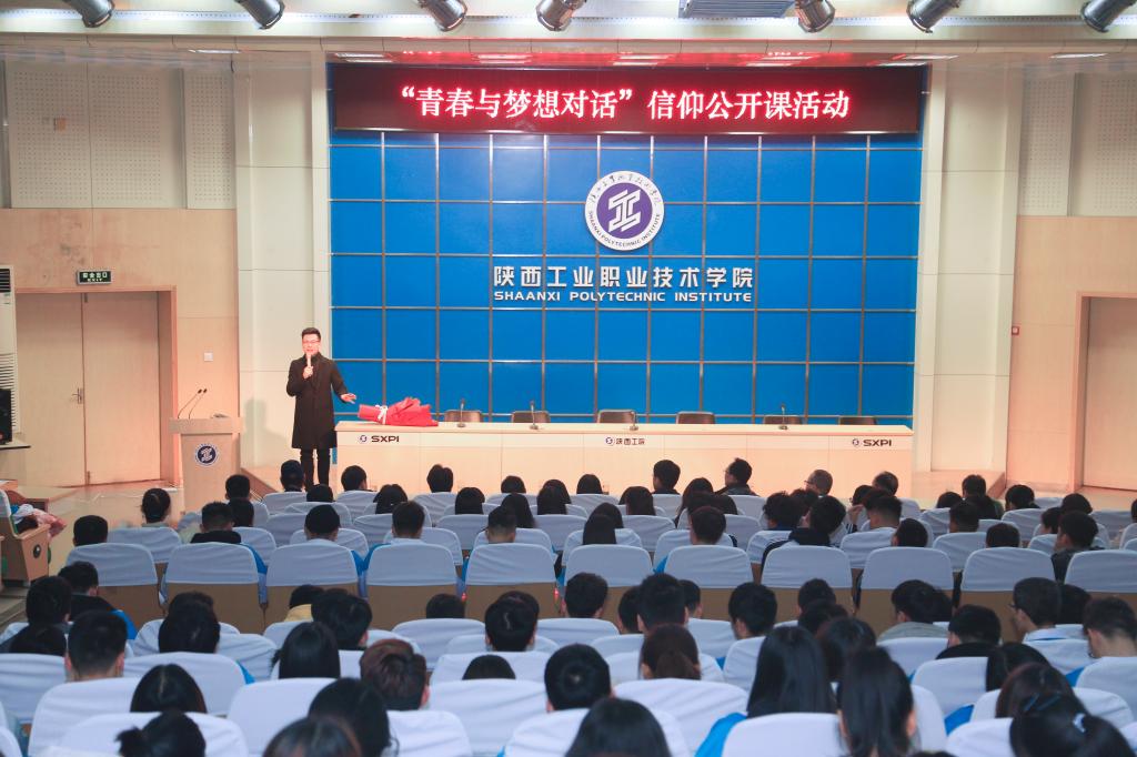 12月19日下午,陕西工院“青春与梦想对话”信仰公开课在学术会堂成功举行。此次活动由学院团委主办、财经与旅游学院承办,邀请财经学院2003届优秀校友、咸阳市广播电视台知名节目主持人霍小平到场讲授。财经学院党总支书记孙继龙、团委书记赵双军、各二级学院团总支书记、辅导员等400余名师生参加了活动。活动由财经学院辅导员狄莹莹主持。