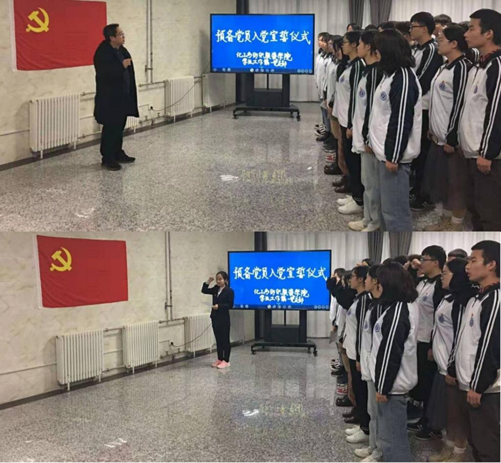 1月2日下午,化纺服学院学生工作第一党支部在精艺楼举行了庄严而神圣的预备党员入党宣誓活动。参加此次活动的有化纺服学院党总支书记王化冰,支部全体党员及新发展党员共计30余人。