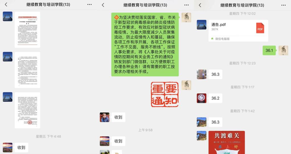 同时,积极落实学院“延期不延学、停课不停学”的要求,他们还积极利用各种方式充电学习,做到“防控不松劲、学习不松懈、工作不停歇”。