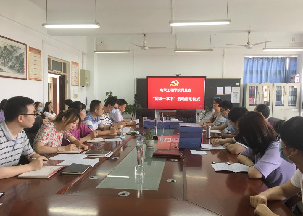 按照《关于做好2020年度“一总支一品牌,同读一本书”活动的通知》精神,为持续构建学习型、创新型、服务型党组织,激发广大党员干部的读书学习热情,营造读书学习、实践探索的浓厚氛围,促进全体党员自主学习的主动性和积极性,提高党员的党性认识、人文精神和专业知识。6月20日上午,电气工程学院党总支在行知楼A502举行“一总支一品牌,同读一本书”的活动启动仪式。全体教师党员参加会议,会议由党总支书记杜云主持。