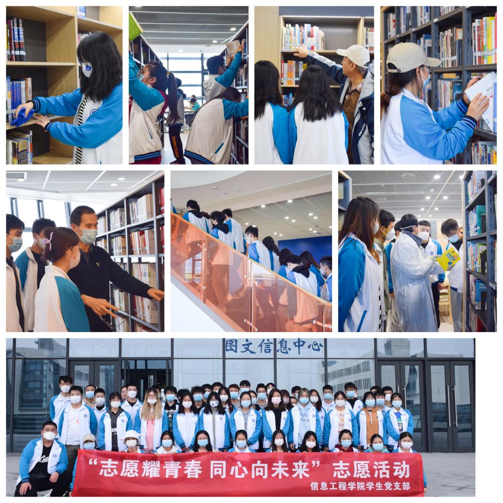 为持续推进信息工程学院“靶向‘三点共圆’激发‘活性因子’”主题党日系列活动,结合《信息工程学院党总支“爱校 爱岗·奉献 贡献”新校区系列活动实施方案》要求,10月17日,信息工程学院学生第一党支部开展了主题党日系列活动“三部曲”之“笃行”——“弘扬‘三种精神’,赓续红色血脉”新校区建设志愿活动,55名党员、发展对象、入党积极分子前往经开校区图文信息中心参加。