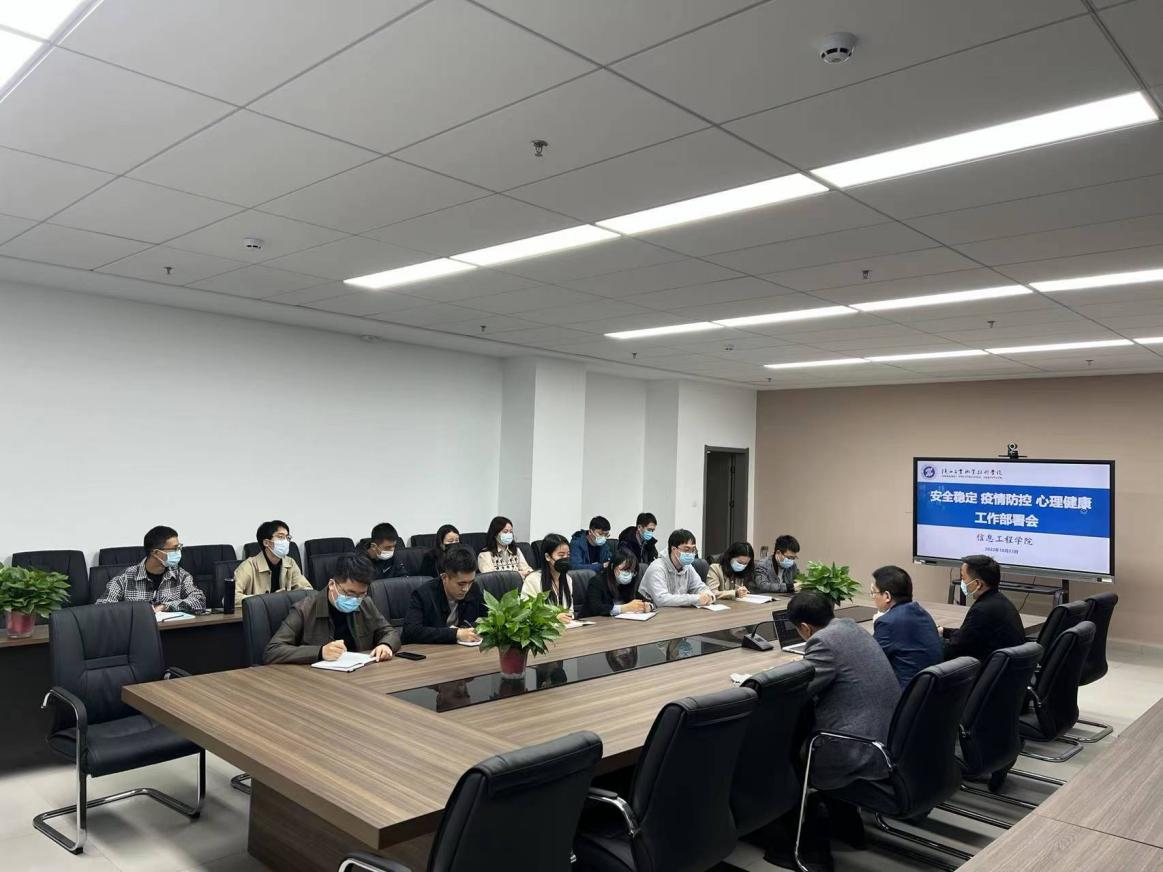 为进一步筑牢校园安全防线,做好疫情防控、学生心理健康等工作,保持学院工作正常稳定。10月23日晚,信息工程学院在经开校区崇理楼c座801召开安全稳定、疫情防控、心理健康工作部署会。信息学院党总支书记闫军、副院长白国政、学工办主任穆昌及全体班主任参加了会议。