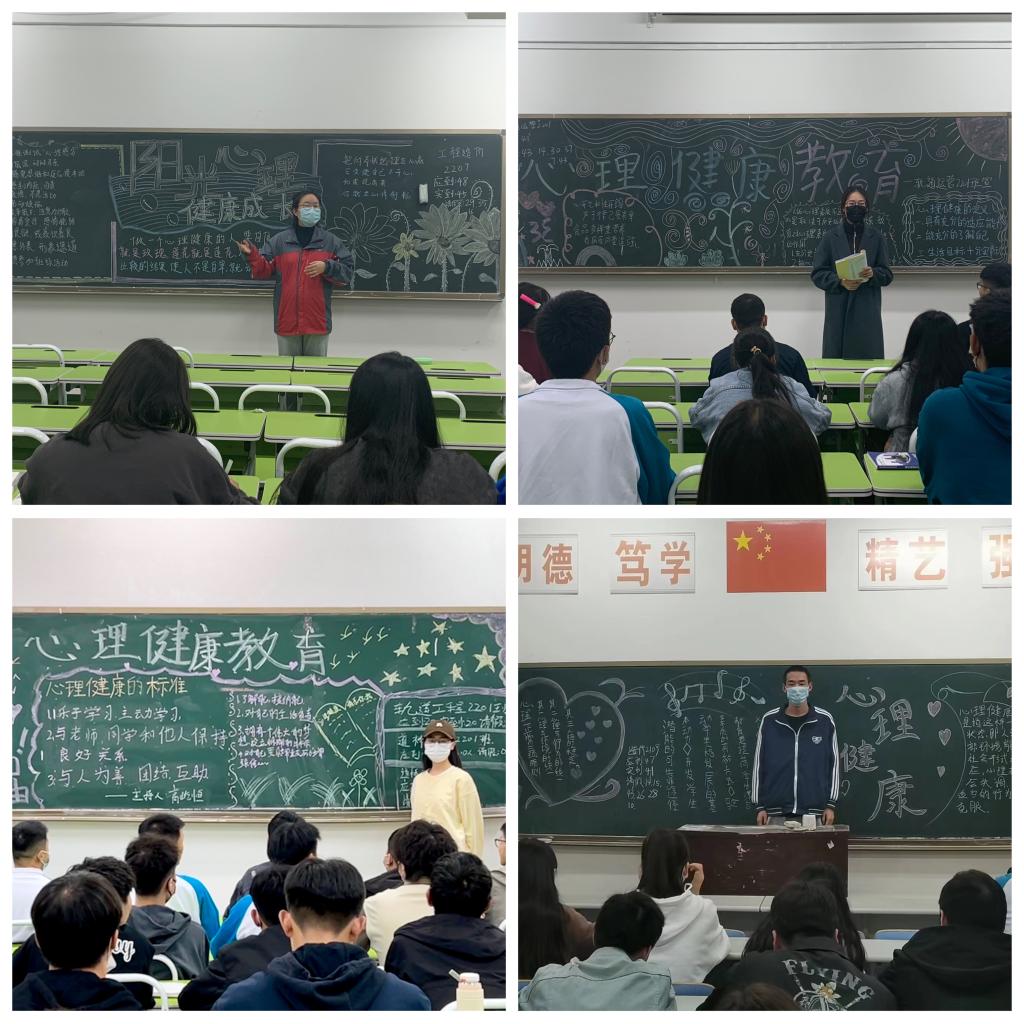 班会通过知识讲解、主题板报、视频等形式展开,各班班主任和心理委员带领本班学生一起学习心理健康相关知识,随后学生们围绕“新生如何更快的适应大学生活”“如何合理安排大学生活”“疫情期间如何调整自身心态”进行了分享。会上各班主任通过对心理健康的重要性、大学生常见的心理问题以及对抗压力的方法等,加深学生对心理健康问题的认识,引导学生学会如何调节情绪、如何与他人相处。同学们纷纷表示:作为当代大学生,我们要学会思考,正视自身心理健康,养成积极进取的学习生活态度。