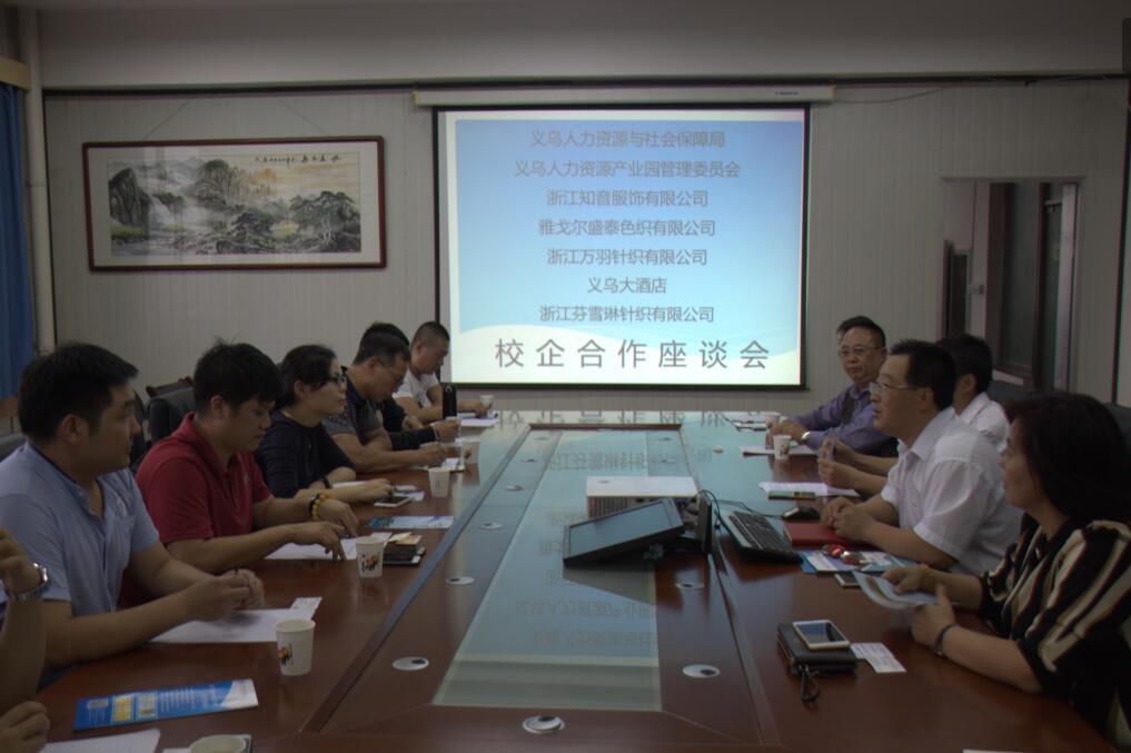 9月24日下午,化工与纺织服装学院举办校企合作座谈会,义乌人力资源与社会局副局长钱凯、义乌人力资源产业园管委会、浙江万羽针织有限公司、义乌恒信人才公司、浙江芬雪琳针织有限公司、浙江知音服饰有限公司和雅戈尔盛泰色织有限公司领导和化纺服学院负责同志参加了座谈会。