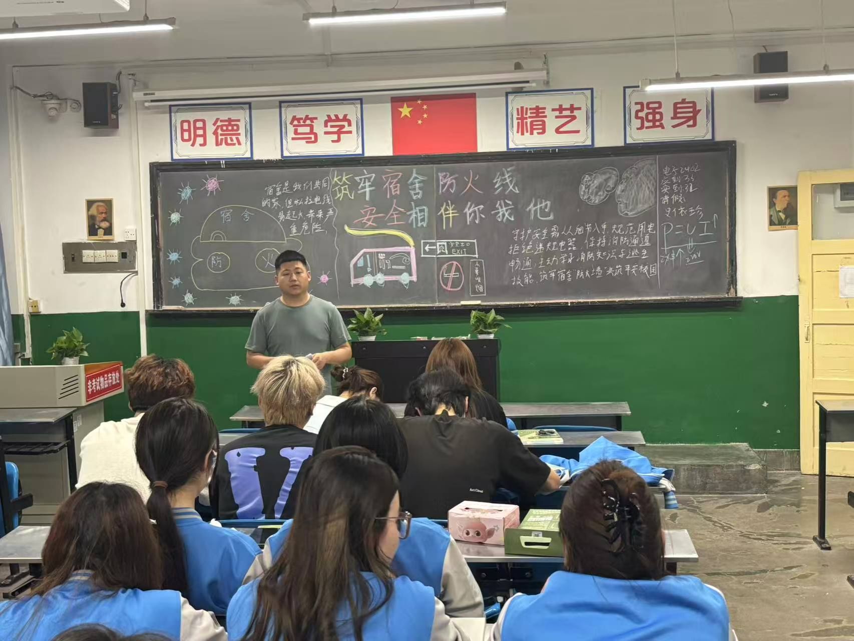 班会上,班主任向每位同学传达宿舍安全与消防安全的重要性,结合具体事例通过播放相关视频向同学们普及了一些宿舍防火防盗的知识。同时认真讲解了在宿舍中需要注意的各项安全注意事项,明确指出在宿舍内禁止使用大功率电器,如热水壶、吹风机和卷发棒等;禁止使用明火,如打火机和电蚊香等,禁止吸烟和焚烧杂物,禁止存放易燃易爆物品等,从根本上杜绝火灾隐患;部分班级还提出禁止携带尖锐刀具和禁止异性留寝。教会学生掌握宿舍火灾逃生技巧,宿舍内如发生火灾时,要沉着冷静,及时向安全出口方向逃生,不贪恋财物,不携带重物,逃离火场后,及时拨打报警电话,不可冒险返回,确保学生在宿舍集体生活的安全有序。