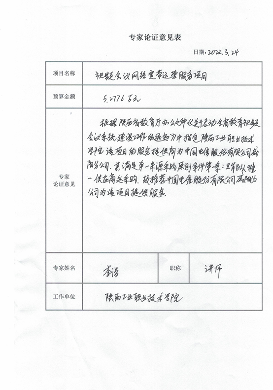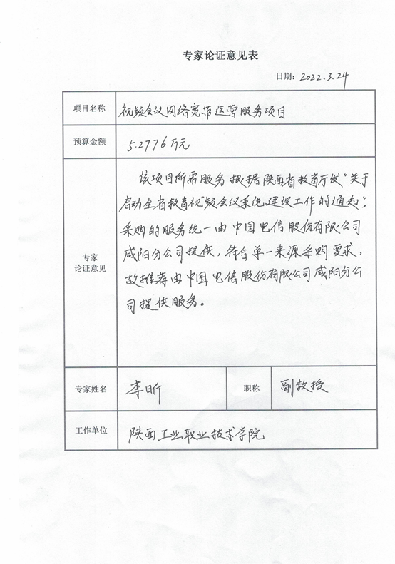 根据《关于启动全省教育视频会议系统建设工作的通知》要求及相关专家论证意见,开云网页版app官网视频会议网络宽带运营服务项目拟采用单一来源采购方式,该项目拟由中国电信股份有限公司咸阳分公司承担。现将有关情况向潜在的供应商广泛征求意见。征求意见期限从2022年3月25日起至2022年3月31日止。