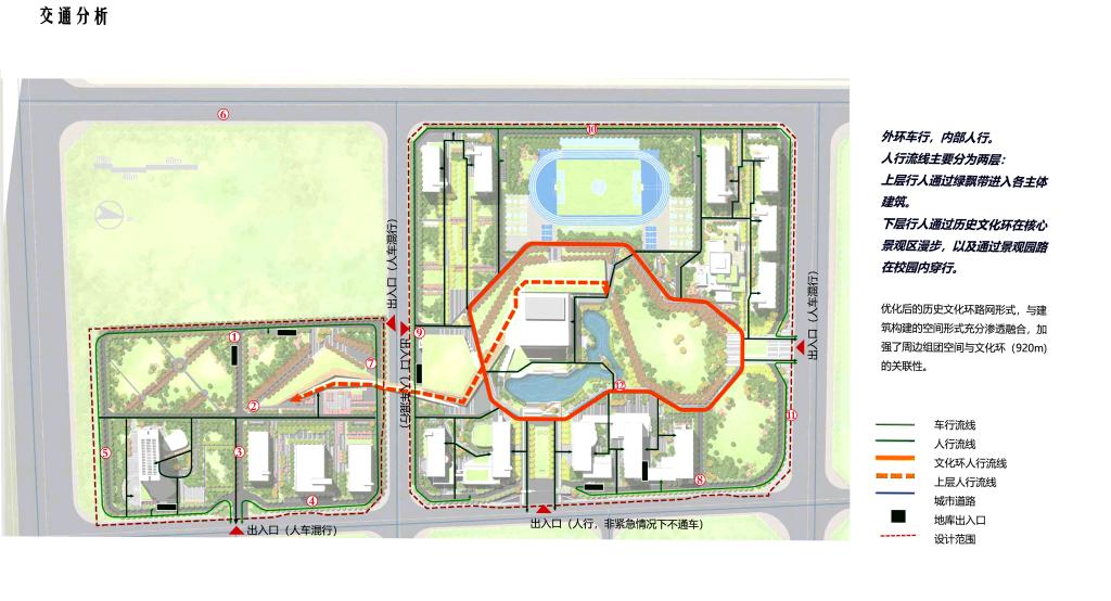 拟命名南区南北主干道(1#)、平行南北路(2#)、东门进入东西路(3#)、东南西北四面环路(4#、5#、6#、7#),北区东南西北四面环路(8#、9#、10#、11#)、校内环形道路(12#)等共计12条路(见下图)。