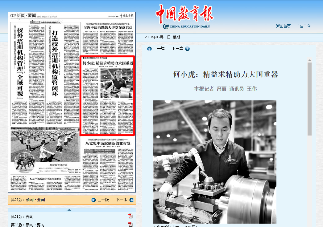 作为一名机械制造与自动化专业的毕业生,何小虎在工作中深刻体会到,要从“中国制造”升级为“中国智造”,我们还有一段很长的路要走,他决心穷尽一生磨炼技能,努力离梦想近些、更近一些。
