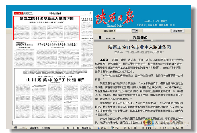 陕西日报—陕西工院11名毕业生入职清华园