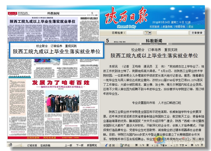 5月24日,《陕西日报》科教版头条报道我院毕业生就业工作,该报道已经被搜狐网、陕西省政府网、和谐陕西网、西部大开发网站等多家媒体争相转载,社会反响较大。现将全文摘转如下: