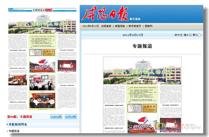 近日,《咸阳日报》专版聚焦我院精神文明建设,以《文明,校园最美的风景》为题,图文并茂地展示了我院“全国文明单位”创建工作。现将全文转载如下: