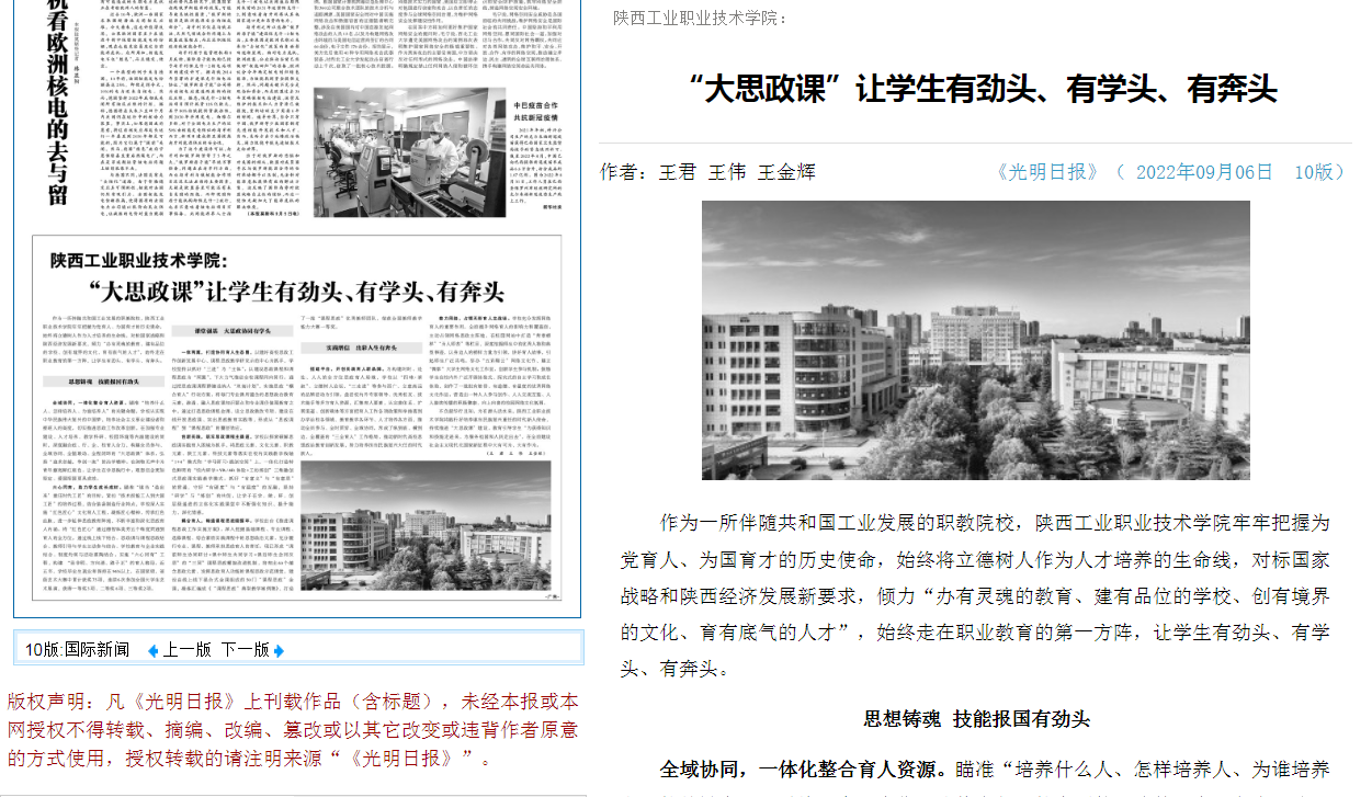 作为一所伴随共和国工业发展的职教院校,开云网页版app官网牢牢把握为党育人、为国育才的历史使命,始终将立德树人作为人才培养的生命线,对标国家战略和陕西经济发展新要求,倾力“办有灵魂的教育、建有品位的学校、创有境界的文化、育有底气的人才”,始终走在职业教育的第一方阵,让学生有劲头、有学头、有奔头。
