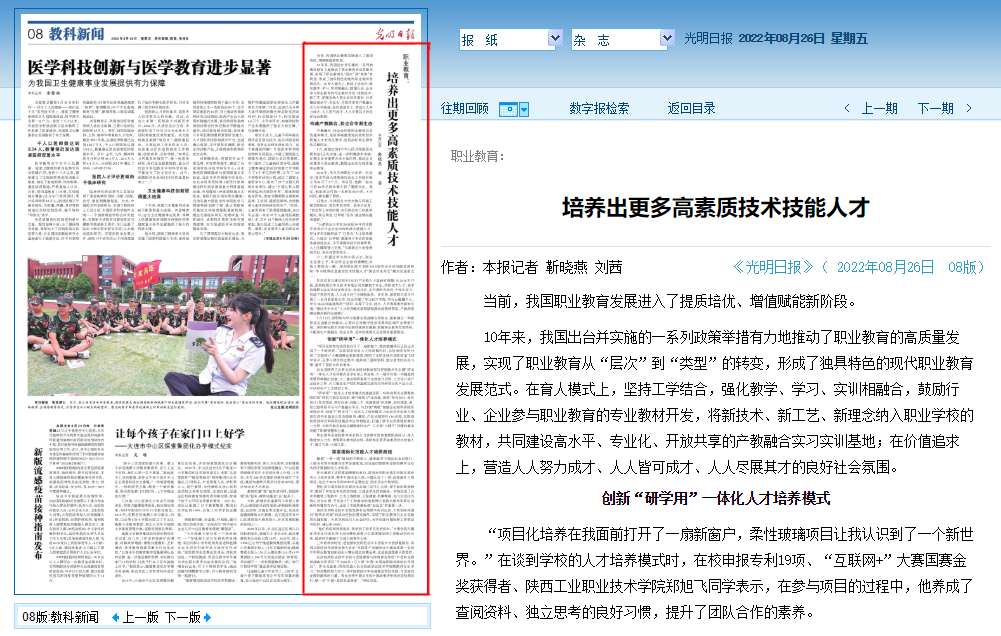 职业教育是国民教育体系和人力资源开发的重要组成部分,深入推进育人方式、增强职业教育适应性,将培养出更多高素质技术技能人才、能工巧匠、大国工匠。
