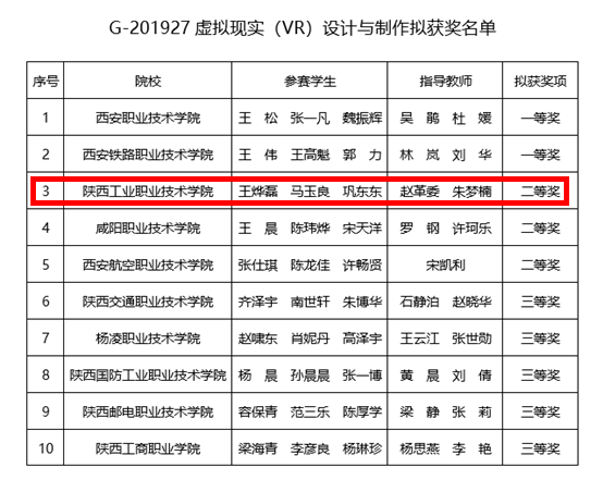 我院获陕西省职业院校技能大赛“虚拟现实(VR)设计与制作”赛项二等奖