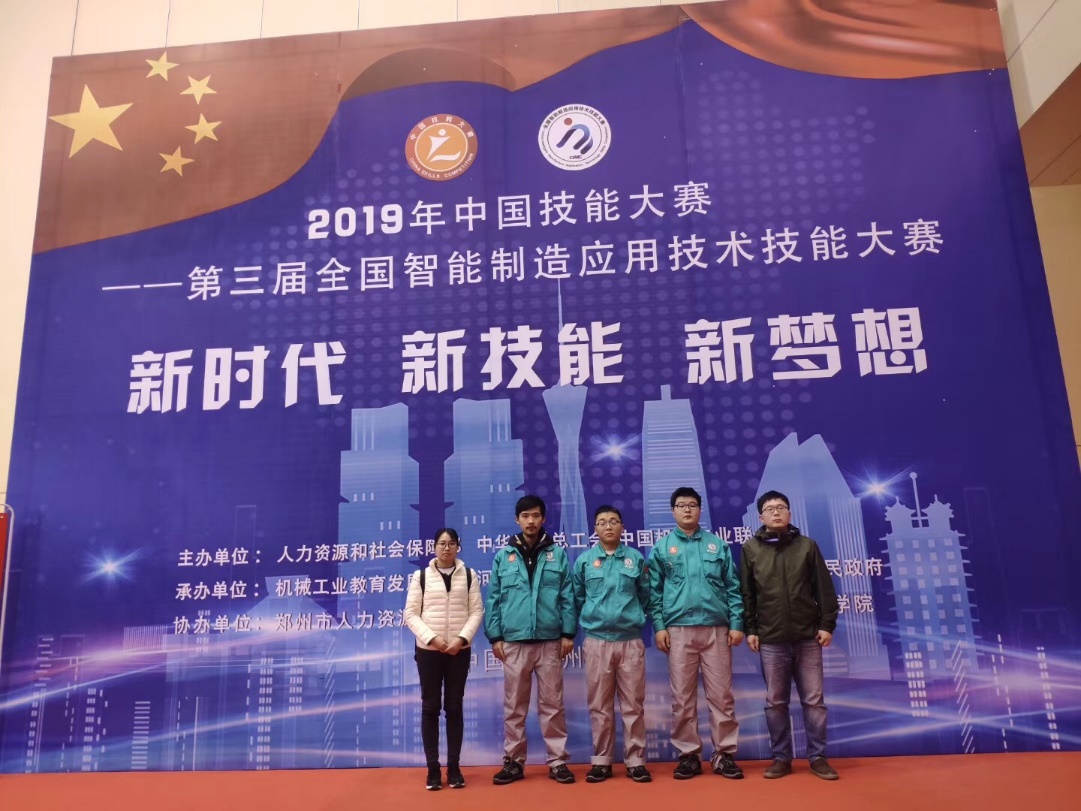 11月22日,2019年中国技能大赛—第三届全国智能制造应用技术技能大赛在河南省郑州市落下帷幕。由航空工程学院赵伟博、王谊老师指导的数控1701班党浩、机器人1801班杨杰、机器人1802班郑展阔三位同学获得切削加工智能制造单元生产与管控赛项学生组三等奖。