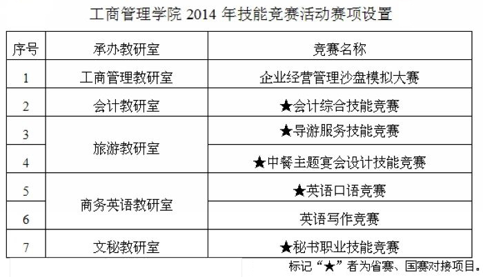 工商管理学院2014年技能竞赛活动安排