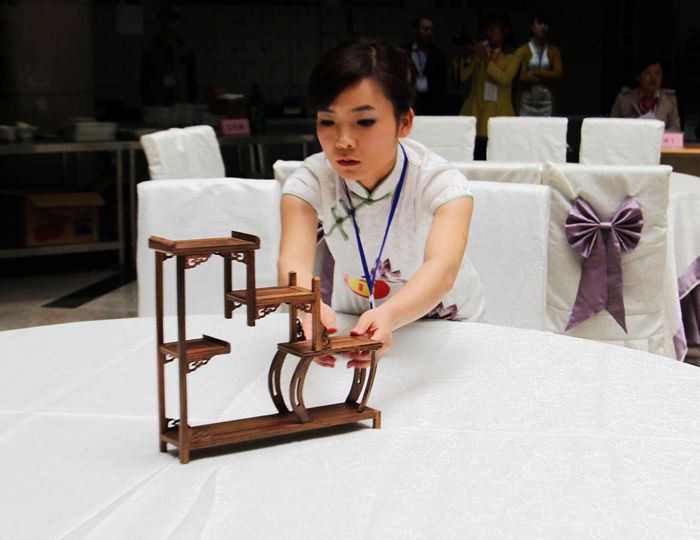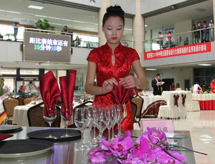参赛选手进行餐巾折花