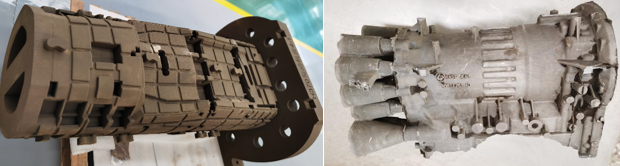 图4 依托实训基地完成的航空发动机砂型和铝合金变速箱样件