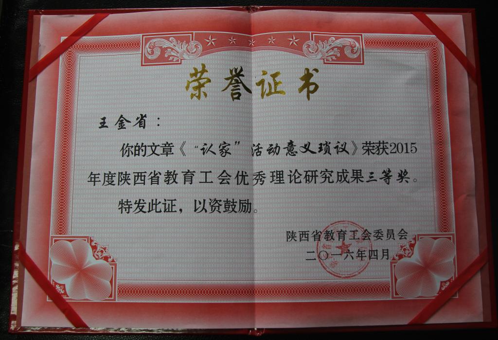 2015年初,我院工会加大工运理论研究的支持力度。一方面,积极发挥陕西工院工运理论研究会的作用,大力号召学院工会委员、分会主席和委员、乃至普通工会会员积极投身工运理论研究工作;另一方面,组织工会委员构成的评审团从选题、调研和论文撰写、结构设计、格式等方面全面支持、全程指导。最终,在全院范围内选送6篇工运理论研究成果上报省教育工会参评,2篇获奖。工会主席刘文青撰写的工会调查报告连续五年荣获省教育工会优秀理论调研成果奖,此次撰写的《基于国家政权的重要社会支柱视域探析高职院校工会工作》一文不但被评为优秀理论研究成果三等奖,还被西北大学公开出版的期刊《高教发展研究》2016年第2期收录发表,为全省高职院校工会工作提供了经验和借鉴。工会王金省老师撰写的《“认家”活动意义琐议》获得优秀理论研究成果三等奖。