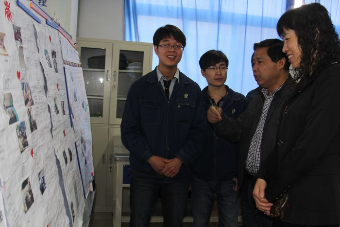 8点30分,随着全体学员齐声朗读我院校训及欧姆龙社训,总结大会正式开始。本次活动采用小组成员协作演讲、教师辅助、学生自评、提问讨论的形式进行。8个汇报小组在20分钟的汇报时间内,首先用图文并茂的板报介绍最近一周的学习情况,他们分别从5S活动、安全知识、TPM 0阶段和1阶段中的安全隐患等方面总结了学习成果及学习过程中的不足,提出了今后的学习目标、改进方向及本次活动的感言。随后,参会领导、老师及同学们互动交流和激烈探讨。最后,由学生自评小组给出得分,并对表现优异的队员发奖。