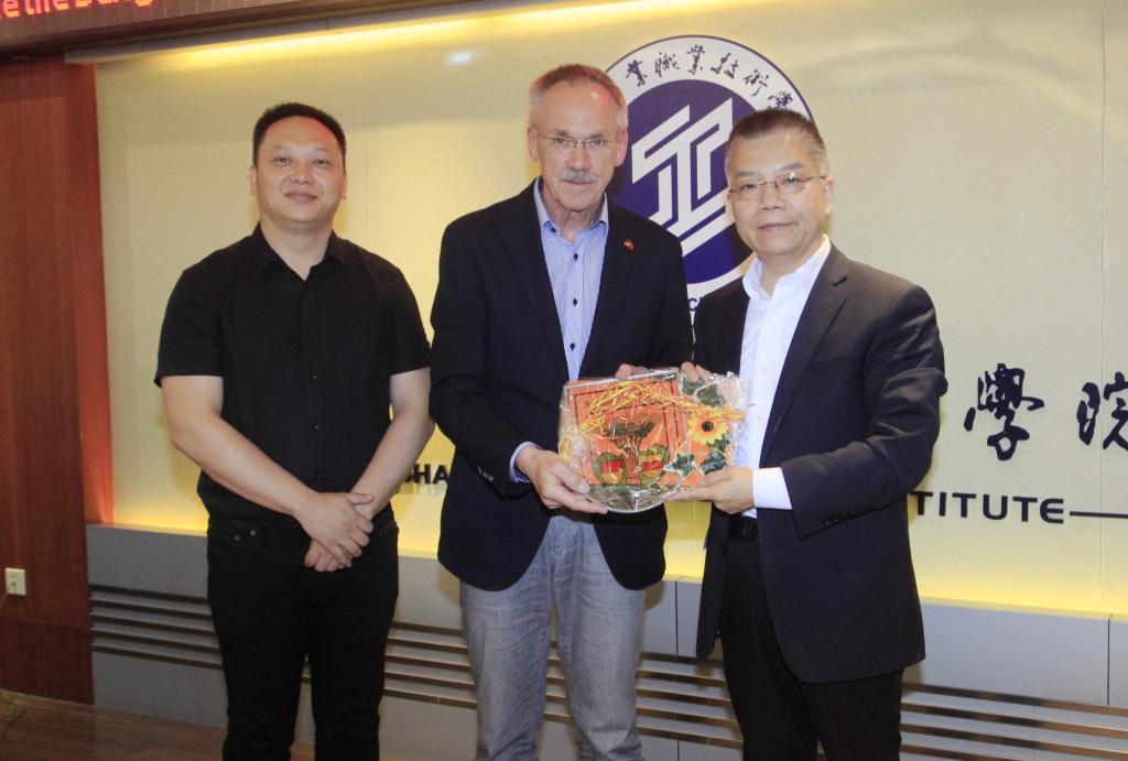 6月20日上午,德国拉腾市市长卡尔•韦伯率领该市政府及企业代表团一行9人在德国陕西商会会长李奇陪同下访问我院。代表团成员包括尼德兰根县、苏斯图姆县县长,埃姆斯企业协会负责人、康迪逊机械有限公司等5家企业负责人。党委书记惠朝阳,党委副书记、副院长刘永亮与来宾在崇文楼会议室座谈交流。