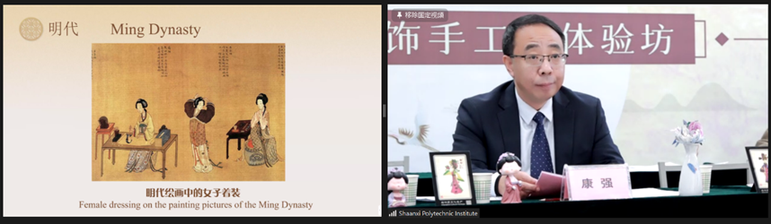 “古典气韵,小雅芳斋中国传统服饰手工艺体验坊”是我校实施的第二个教育部“汉语桥”项目。活动包含为期10天的直播课和时长200余分钟的我校双语金课。该项目依托校党委副书记、纪委书记康强教授主持的《服装传统手工艺》双语金课、小雅芳斋传统文化工作坊和陕西省相关非遗文化资源,以中文和职业技能为主题,为“一带一路”沿线国家和发展中国家职业院校学生打造中文学习、文化体验和技能学习三位一体的精品项目。